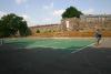 Kort tenisowy w Moryniu- mury obronne z XIV w.